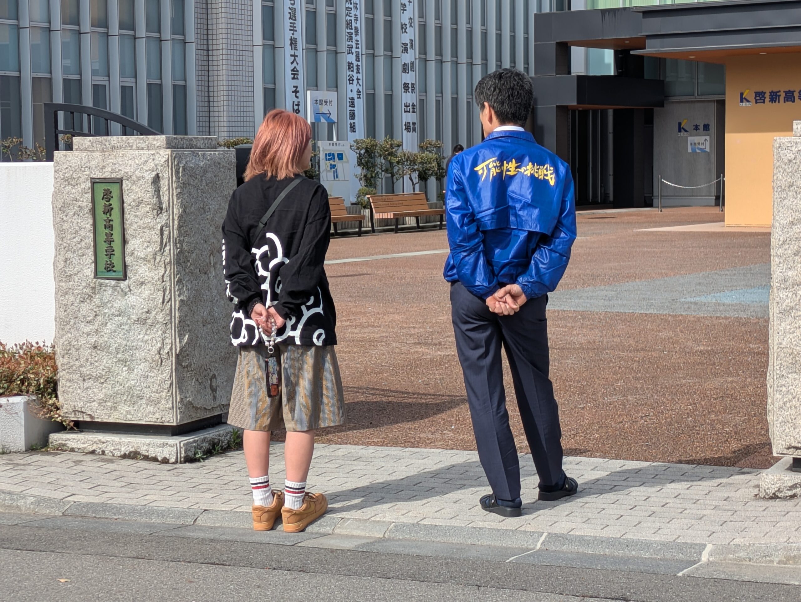まずは、生徒の登校を見守っていた校長先生にご挨拶。